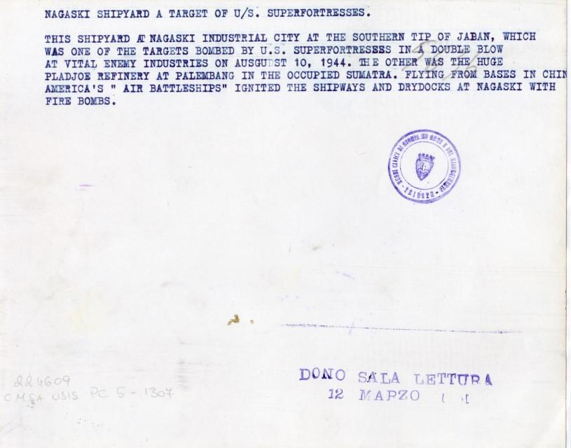 Veduta dall'alto di un cantiere navale giapponese nell'area di Nagasaki, obiettivo militare americano.