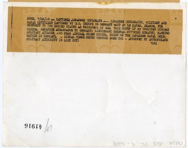 Gruppo di trentatrè diplomatici giapponesi catturati in Germania stanno per partire da Le Havre (Francia) per gli Stati Uniti, dove saranno trattenuti come prigionieri di guerra.