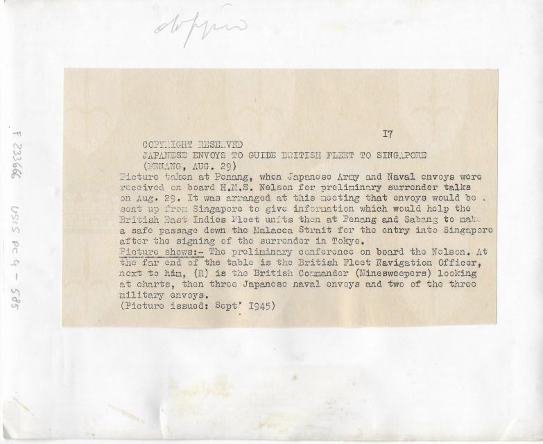 Conferenza preliminare con i delegati giapponesi per il passaggio di Malacca e Singapore agli alleati