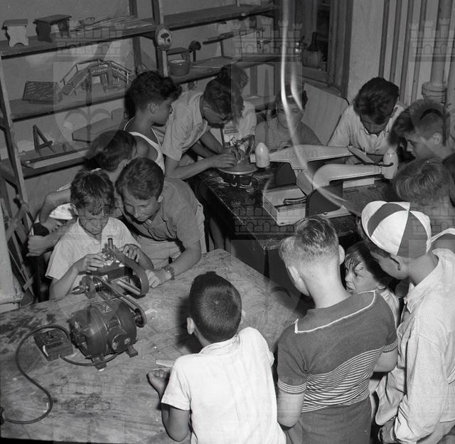 Ragazzi ripresi accanto a macchine utensili