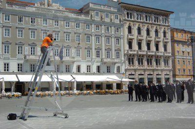 Piazza dell'Unità d'Italia: i membri della Polizia Municipale nei preparativi per lo scatto della foto di gruppo ufficiale