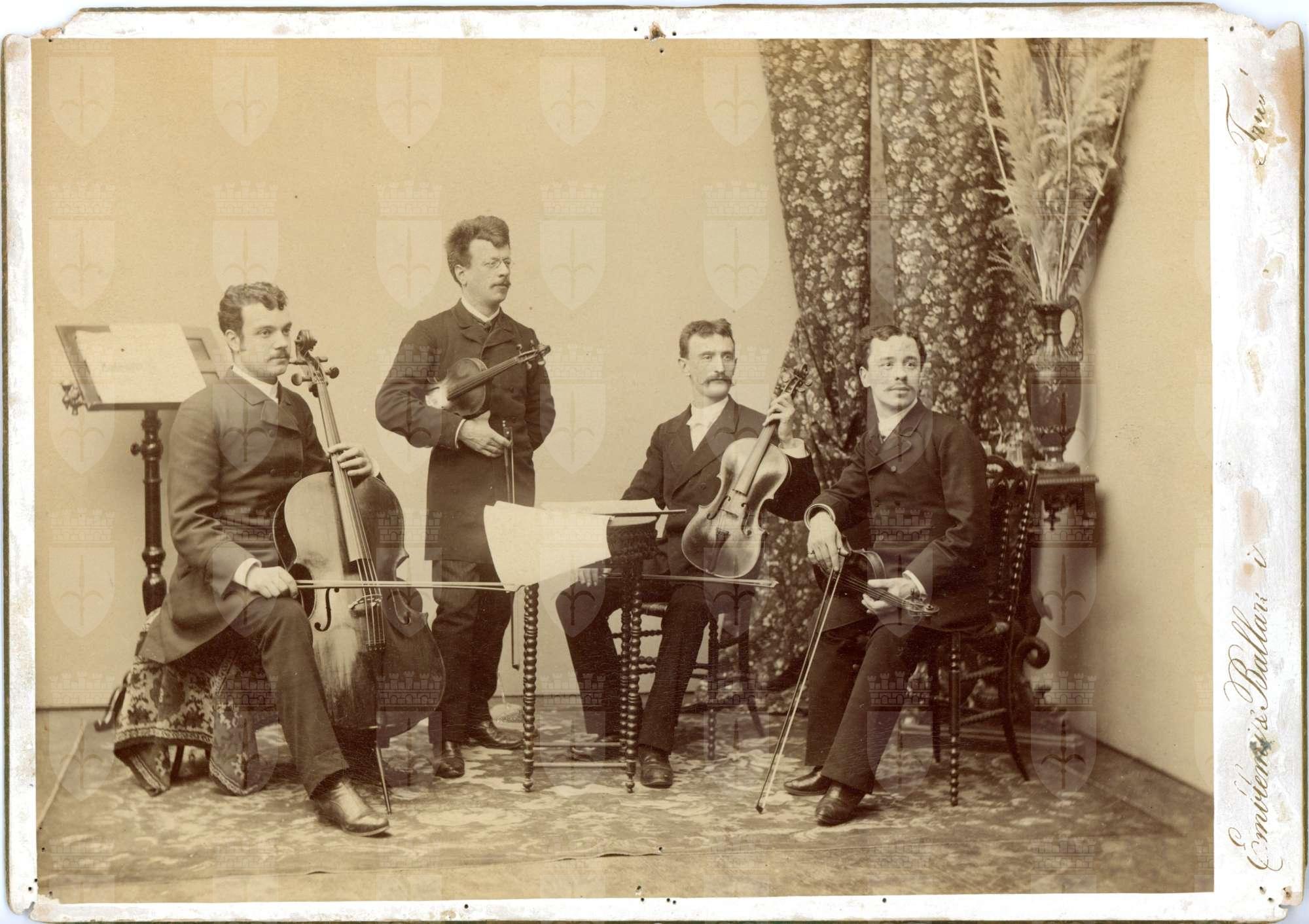 Coronini Carlo in piedi (violino), De Luigi Luigi (viola), Moreschi Enrico (violoncello) e Vram Arturo (violino)