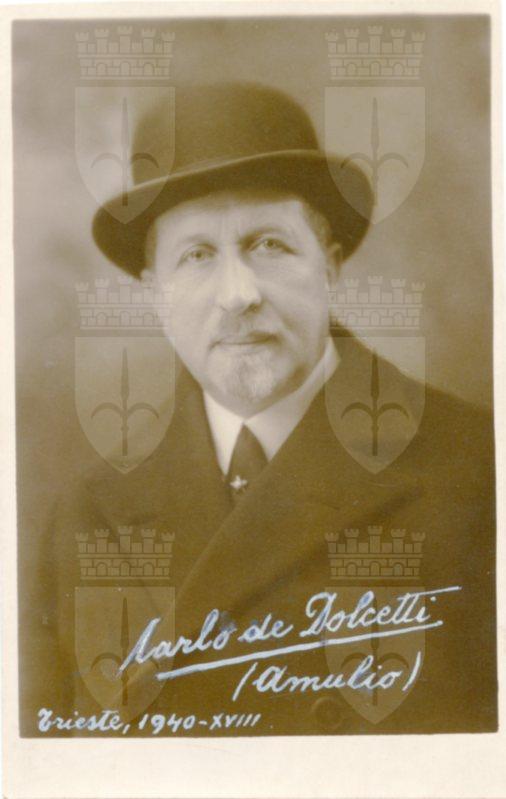 Carlo de Dolcetti è stato un giornalista e scrittore triestino. Ha fondato nel 1911 un giornale satirico "el Marameo" dove scriveva con lo pseudonimo di Amulio. E' autore di canzoni triestine, ma la sua opera più nota è "L'opera lirica spiegata al popolo" in cui spiega in versi triestini le opere più note.