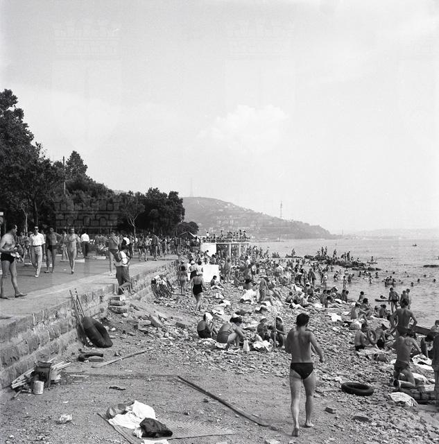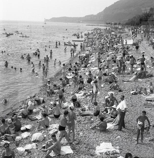 Barcola : Folla bagnanti sulla scogliera