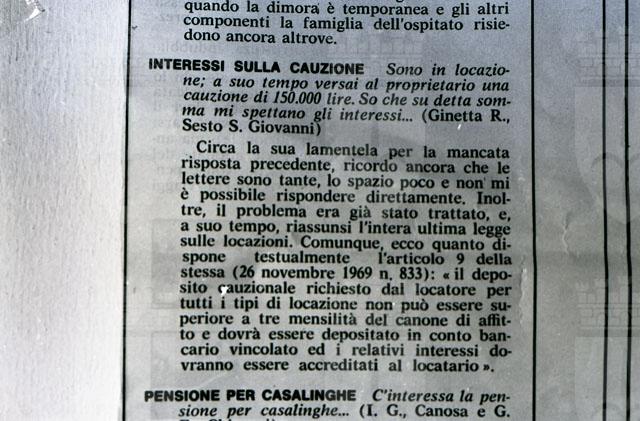 Riproduzione di un articolo su interessi su cauzione.