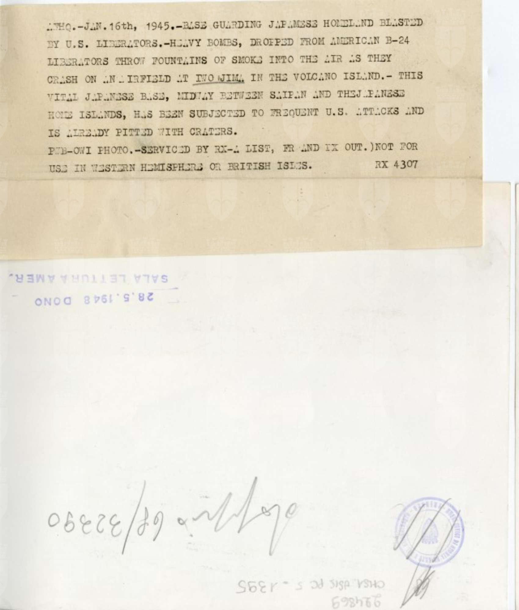 Base giapponese a Iwo Jima colpita dagli attacchi americani.