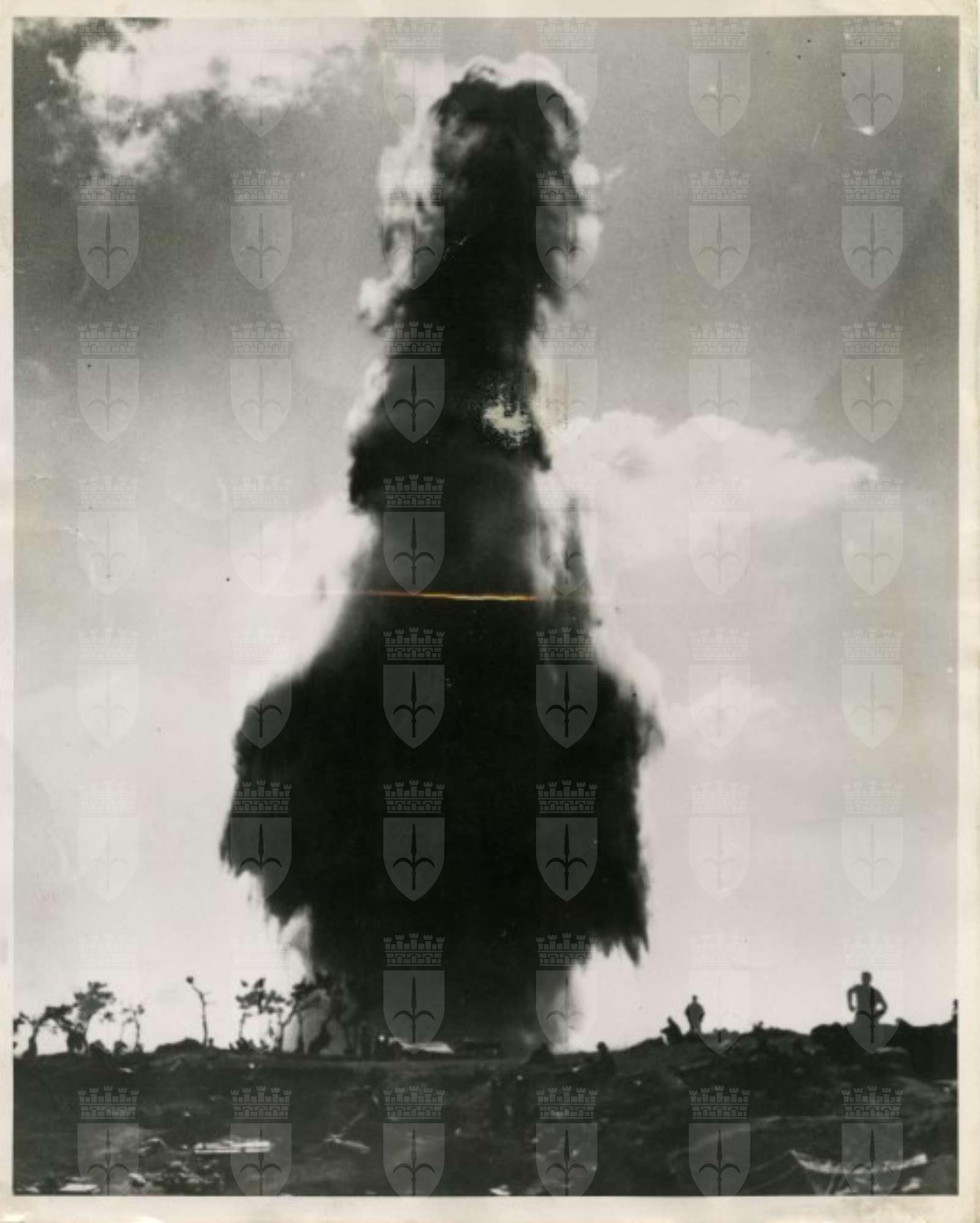 Incendio di un impianto petrolifero giapponese sull'isola di Okinawa nel marzo del 1945.