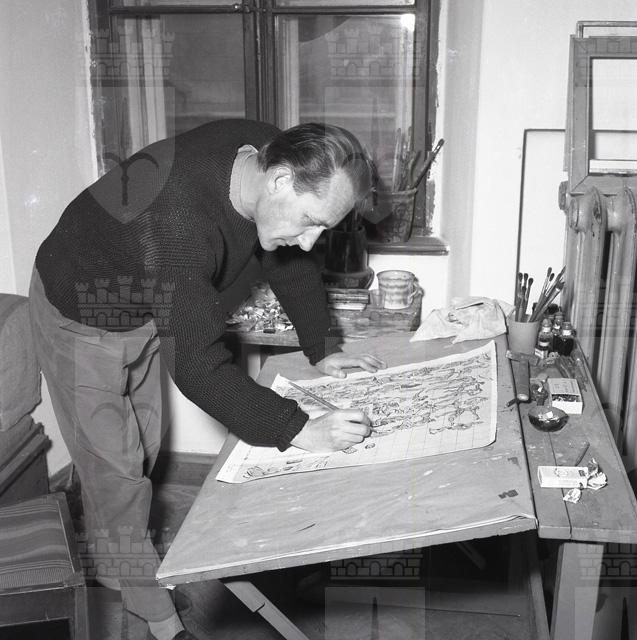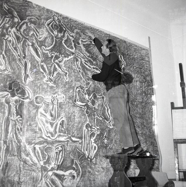 Si tratta in realtà del cartone dell'affresco, con scene di danza con satiri e altre figure mitologiche, che decorava l'atrio del Teatro Nuovo di via Giustiniano a Trieste, sede della Compagnia stabile di prosa, che iniziò la sua attività' il 22 dicembre 1954. Si dice che Righi, coadiuvato dal pittore Carlo Giorgio Titz, abbia eseguito l'affresco in un giorno e una notte. Purtroppo l'opera andò perduta durante i lavori di demolizione dell'edificio, nel 1962, per far posto alla costruzione della sede Rai. Al pittore Riccardo Bastianutto, incaricato di eseguire lo strappo, non arrivò mai il permesso da parte delle autorità competenti.