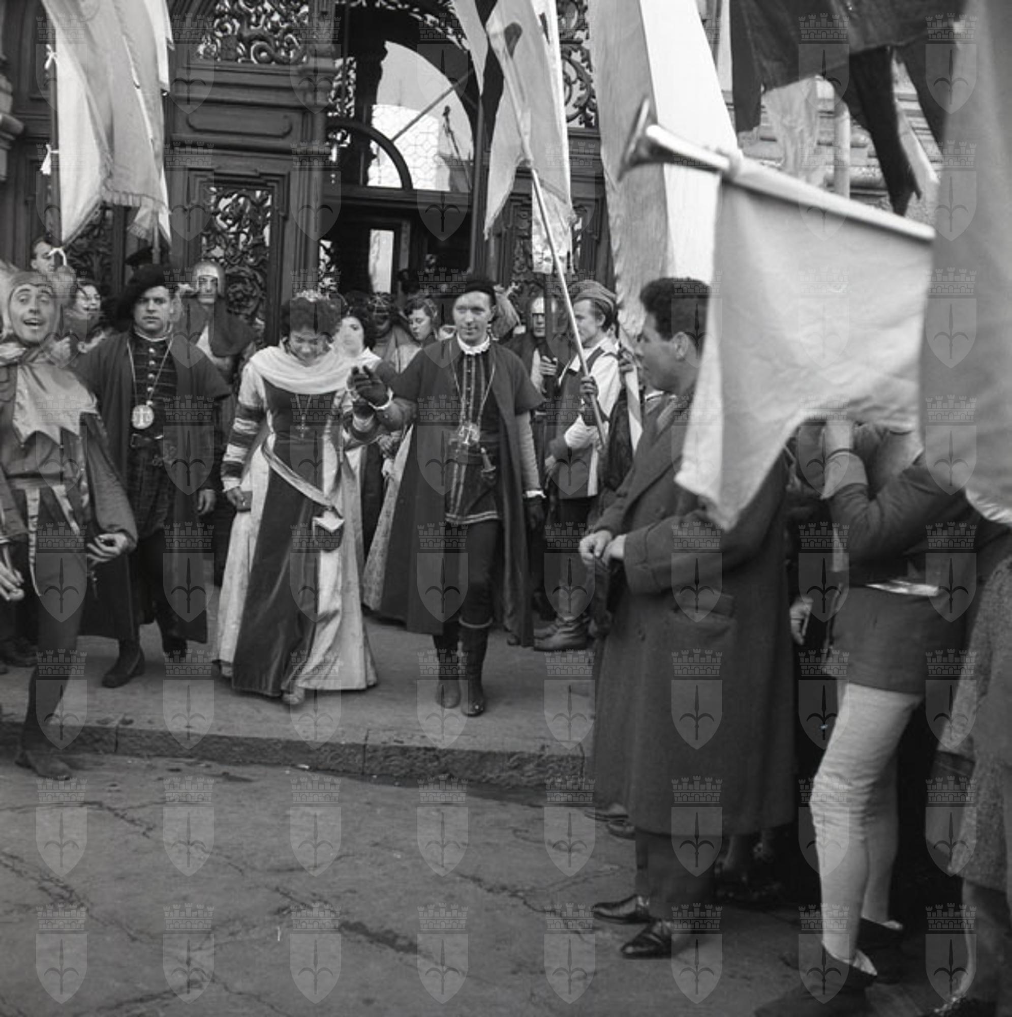 Grande sfilata di Carnevale in costumi medievali con suonatori e sbandieratori e successiva visita in Comune al sindaco Bartoli. Nella Tavagnacco, vestita da madamigella della Signoria di Gorizia, porta un invito a un convegno previsto per la domenica successiva a Gorizia. (Notizie tratte da Il Piccolo, 14.02.1955).