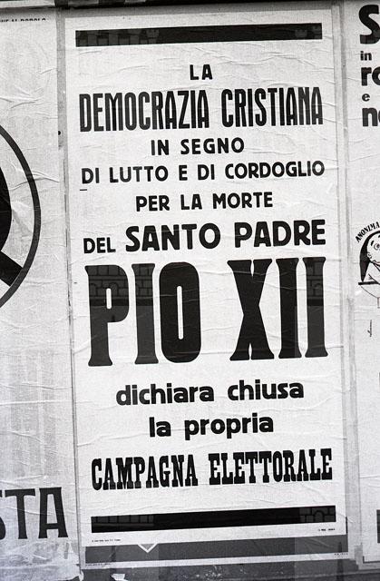 Appena appresa la notizia della scomparsa del Sommo Pontefice la Democrazia Cristiana dichiara chiusa con un comunicato la sua campagna elettorale invitando anche gli altri partiti a fare lo stesso