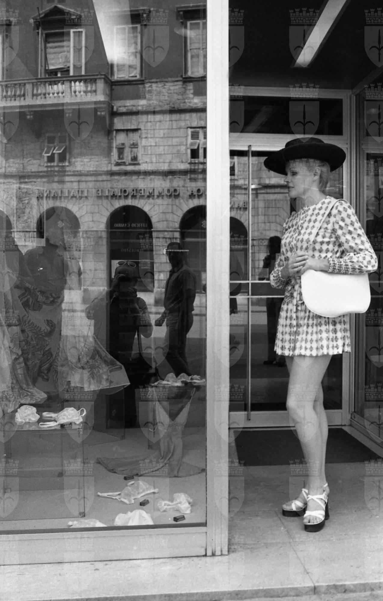 Caroll Baker assiste alla proiezione del film Baba Yaga del regista Corrado Farina insieme all'attrice Isabella da Funes.
