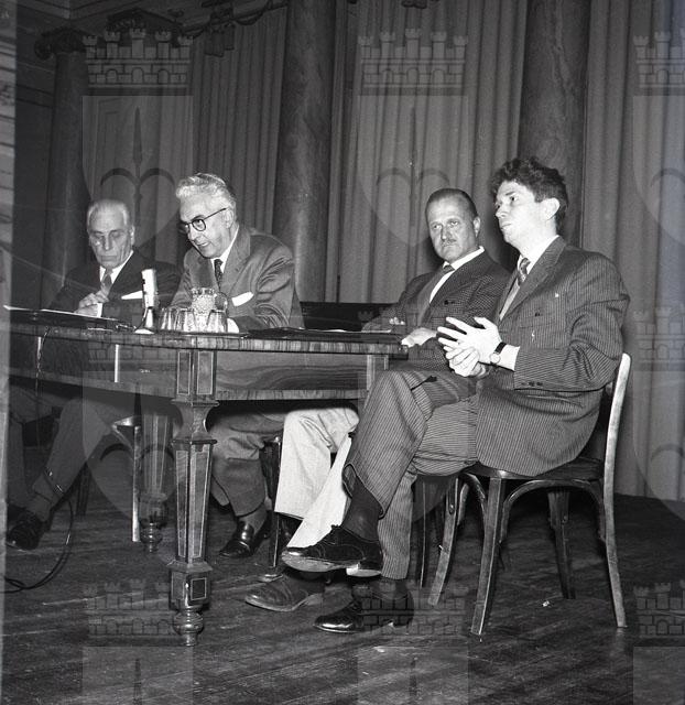 La conferenza affronta il tema della tutela e dello sviluppo dei centri urbani. Partecipano il prof. Pio Montesi, l'architetto Piero Bottoni, e il prof. Umberto Nordio.