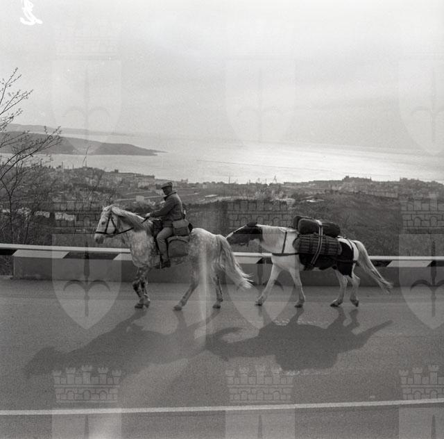 Il colonnello inglese della Royal Air Force, in sella a un magnifico cavallo bianco, giunge a Trieste dall'Inghilterra, intenzionato a raggiungere la Nuova Zelanda.