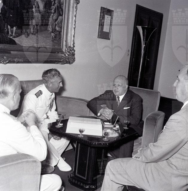 Giungono a Trieste l'incrociatore Gambia, i cacciatorpediniere Dainty e Delight. Il capitano di vascello W. J. Munn saluta il sindaco Franzil accompagnato dal console inglese Neville Terry.