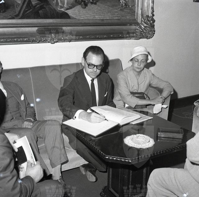 L'ambasciatore brasiliano Edmundo Penna Barbosa da Silva e il ministro Sergio Correa da Costa capo del servizio selezione emigranti dell'ambasciata del Brasile a Roma sono in visita alla nostra città ricevuti in Comune dal sindaco Franzil e in seguito al porto per verificare le condizioni dello scalo in vista di un possibile istituzione di un deposito brasiliano di legname. Il Piccolo 15.06.1960