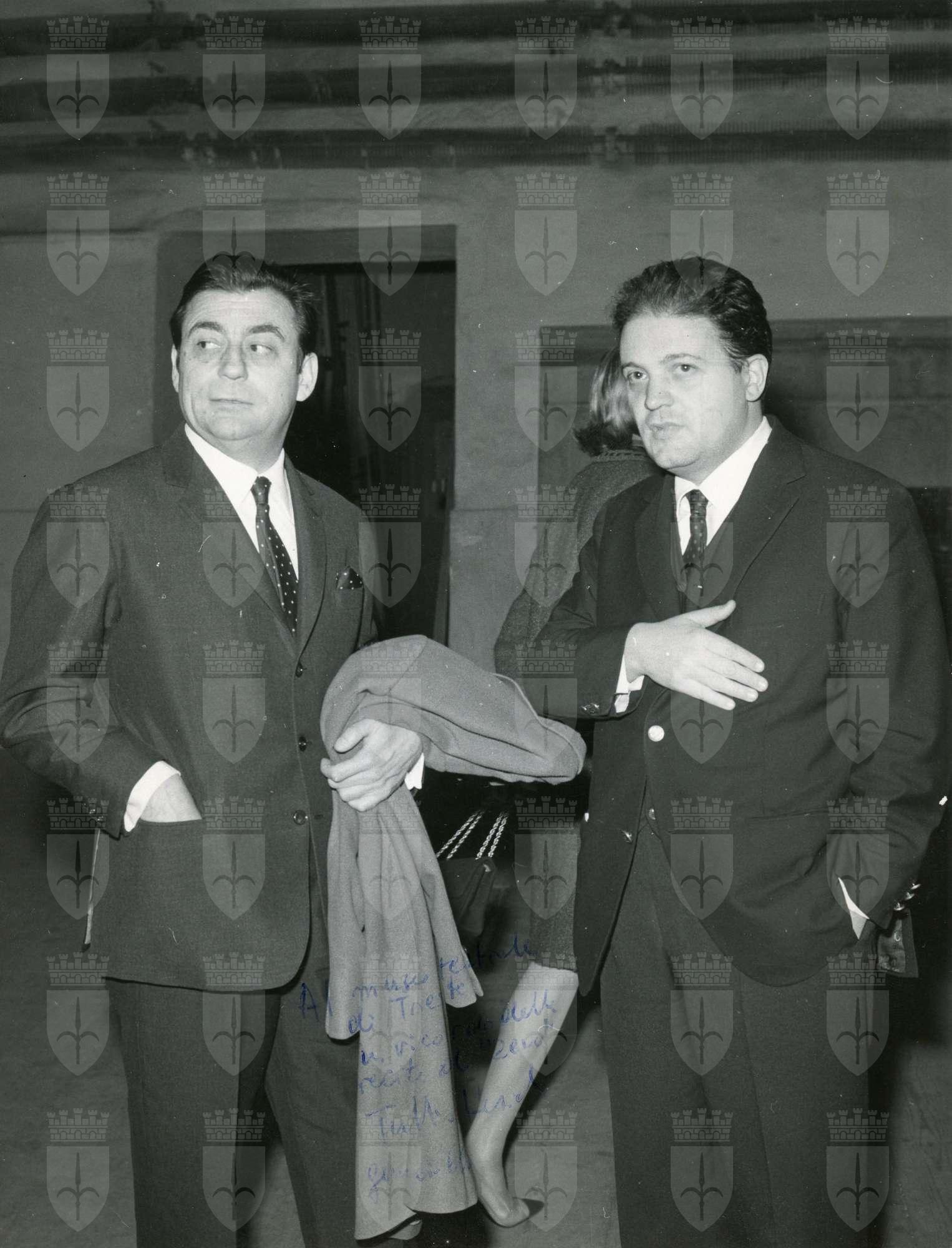 Tullio Kezich con l'attore francese Francois Périer, in occasione dello spettacolo "La coscienza di Zeno" il 17 gennaio 1966, spettacolo che porterà poi a Parigi