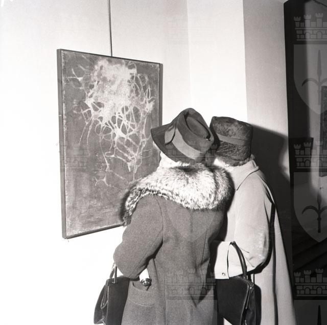 Presso la Galleria del Teatro Nuovo ha luogo la rassegna di undici artisti della Nuova Scuola Europea organizzata a Trieste con la collaborazione delle gallerie Kasper di Losanna e Il Canale di Venezia. Si tratta di un'esposizione ricca di spunti polemici. I pittori e scultori, per lo più d'età inferiore ai quarant'anni ch vi partecipano, affermano di battersi "contro ogni forma di provincialismo" per realizzare l'unità europea anche nel settore artistico. Con il belga Haccaria sono presenti alla mostra gli spagnoli Argimon, Tabara e Vallès, gli italiani Barisani, Bonalumi e Marti, i parigini Ducman e Kerg e gli svizzeri Madin e Rehmann. Testo tratto da "Nuova scuola europea" in "Il Piccolo. Le ultime notizie, 28.11.1961 p. 2. Il giornale pubblica una foto di Adriano de Rota che coglie un anziano Cesare Sofianopulo che si abbassa ad analizzare il piedistallo di una statua.