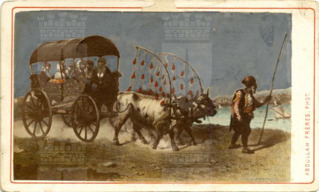 Donne turche in una "araba". L'araba è una vettura trainata da buoi guidata da un sa´s, uomo a piedi.