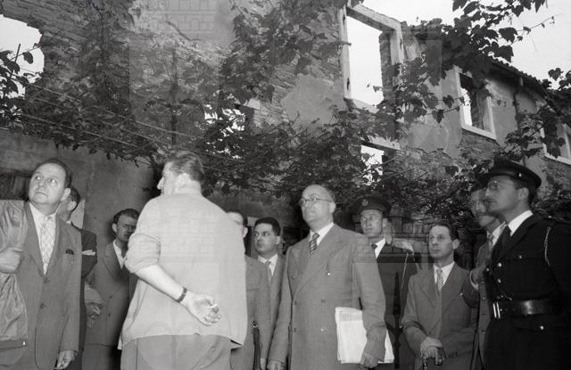 Il dott. Palermo, presidente della Corte d'Assise, compie un sopralluogo a Mattonaia, località nei pressi di Domio, in relazione al processo per il delitto di Emilio Jurissevich, soprannominato la "primula rossa", ucciso da due sicari dell'OZNA il 19 novembre 1949 per motivi politici.