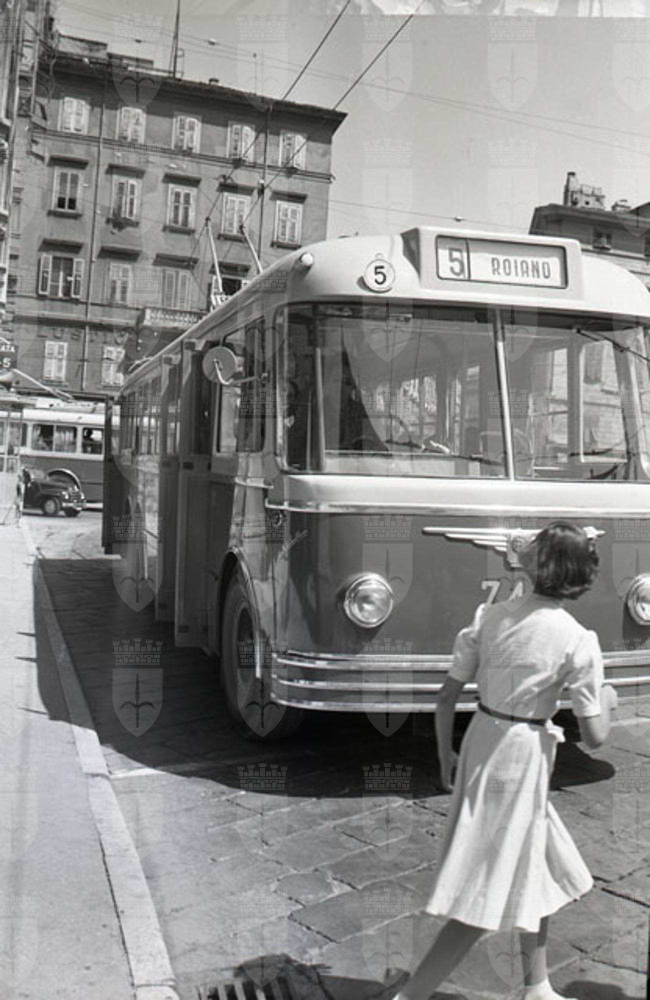 La vecchia pensilina della stazione centrale e la filovia della linea 5 in piazza Goldoni.