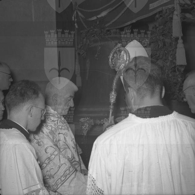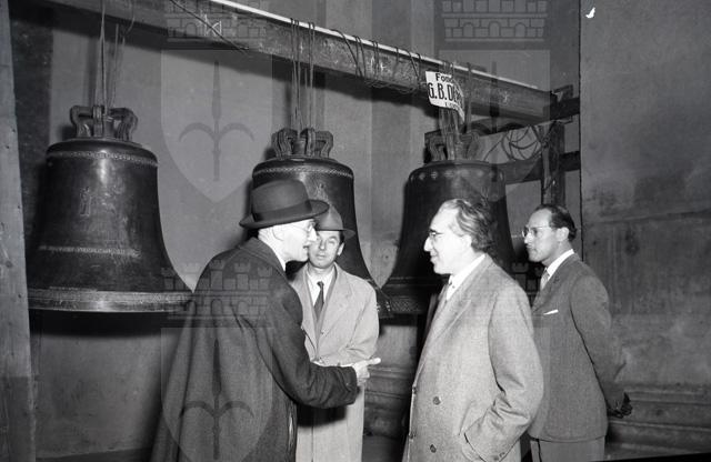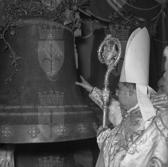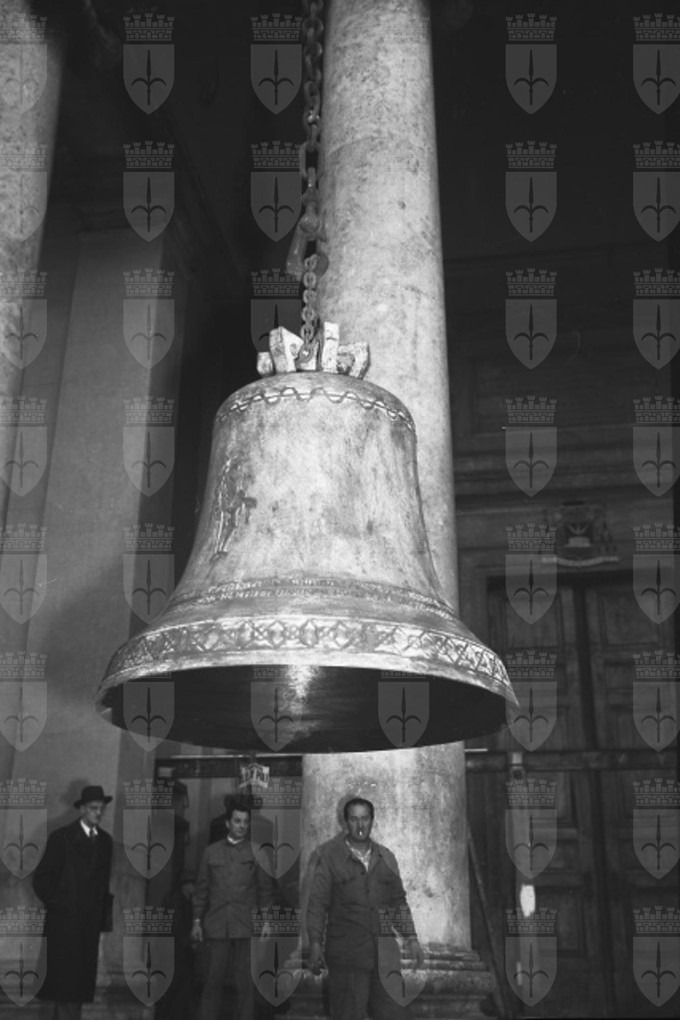 Quarantasette nuove campane, in sostituzione di quelle requisite o distrutte durante la guerra, vengono benedette dal vescovo Santin davanti alla Chiesa di Sant'Antonio Taumaturgo