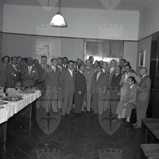 Gli industriali del legno festeggiano il capogruppo della categoria in seno all'Associazione industriali, Carlo Frandoli, insignito della commenda all'Ordine della Repubblica. Il dott. Dario Doria, presidente dell'Associazione, a nome di tutti gli industriali, offre a Frandoli l'insegna onorifica. (da: Giornale di Trieste, 20 giugno 1953)