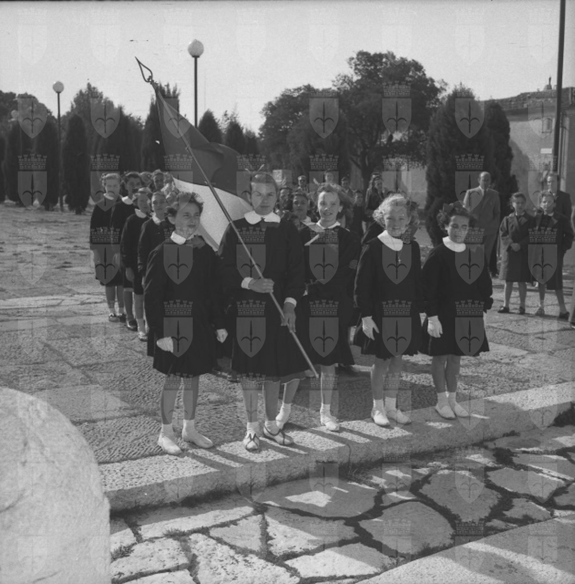 Le alunne della quinta elementare di San Stino di Livenza, vincitrici di un premio per il risparmio, sono le prime scolare d'Italia che vedono Trieste imbandierata. La foto è pubblicata su Il Giornale di Trieste del 13 ottobre.