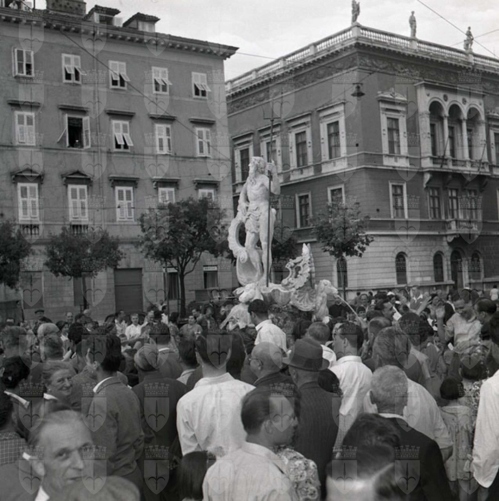 Inaugurazione della nuova ricostruzione della fontana, opera di Giovanni Mazzoleni, a cura dello scultore Nino Spagnoli (cfr. Trieste 1900-1999. Cent'anni di storia, v. 6, p. 189)