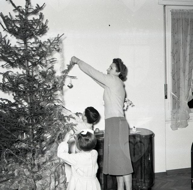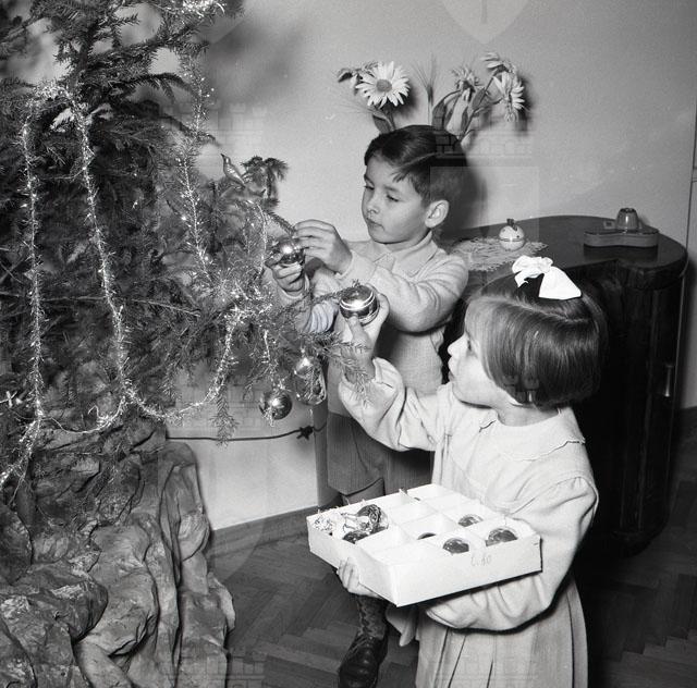 Fratellini addobbano l'albero di Natale