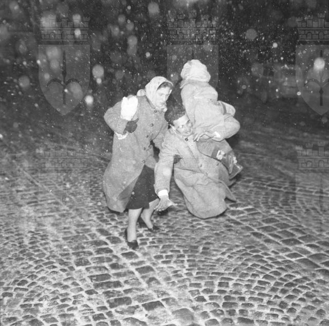 Tra gennaio e febbraio imperversa il maltempo in citta', con bora, gelo e qualche abbondante nevicata. Vedute di piazza Unita' d'Italia, delle Rive, del molo Audace, di viale XX Settembre, di via Fortunio, del Colle di San Giusto, dal quale scendono improvvisati sciatori. Alcune violentissime raffiche di bora provocano quattro vittime, crolli e danni in via Conti, in via Molino a Vento, alla piscina comunale Bruno Bianchi, alla fabbrica di birra Dreher e in altre zone della città. 147 famiglie si ritrovano prive di alloggio.