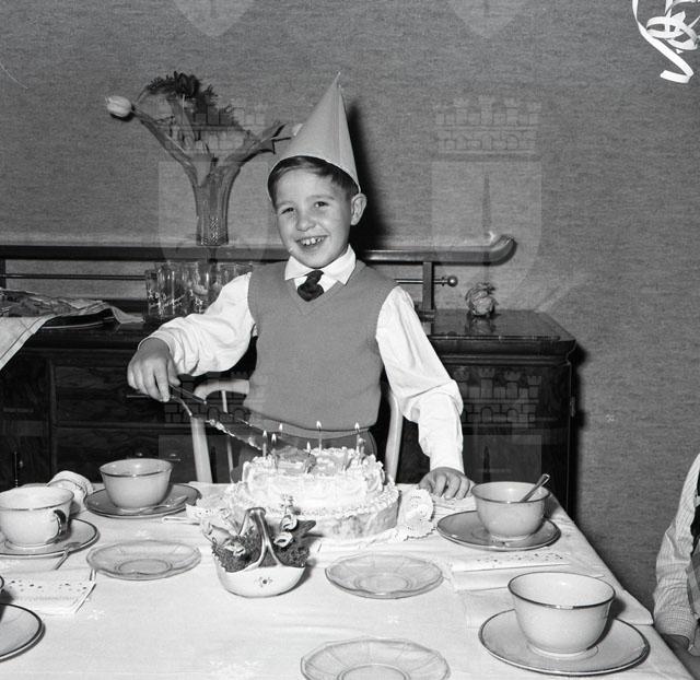Bambino festeggia il suo settimo compleanno con gli amici, durante il Carnevale
