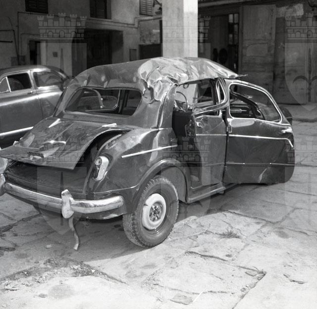Immagini di una Fiat Millecento gravemente danneggiata.