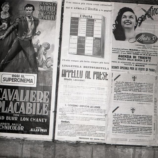 Manifesti cinematografici, pubblicitari e politici affissi