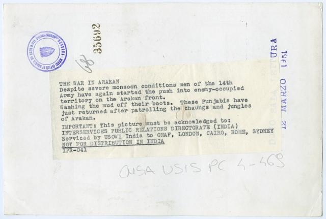 Soldati indiani lavano i loro stivali dopo esser stati nella jungla di Arakan.