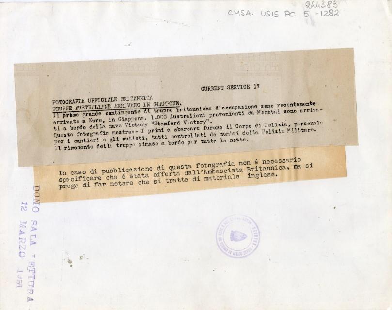 Il Corpo di Polizia australiano sbarca a Kure in sostegno del contingente inglese.