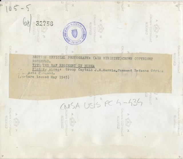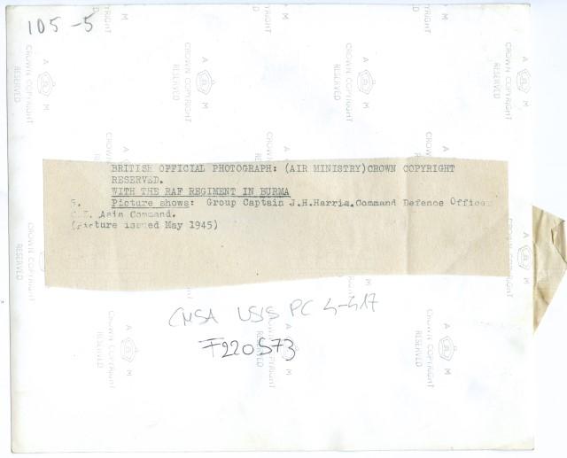 Il comandante J.H. Harris, in un momento di pausa, assieme ai soldati di un reggimento della RAF (Royal Air Force) in Birmania