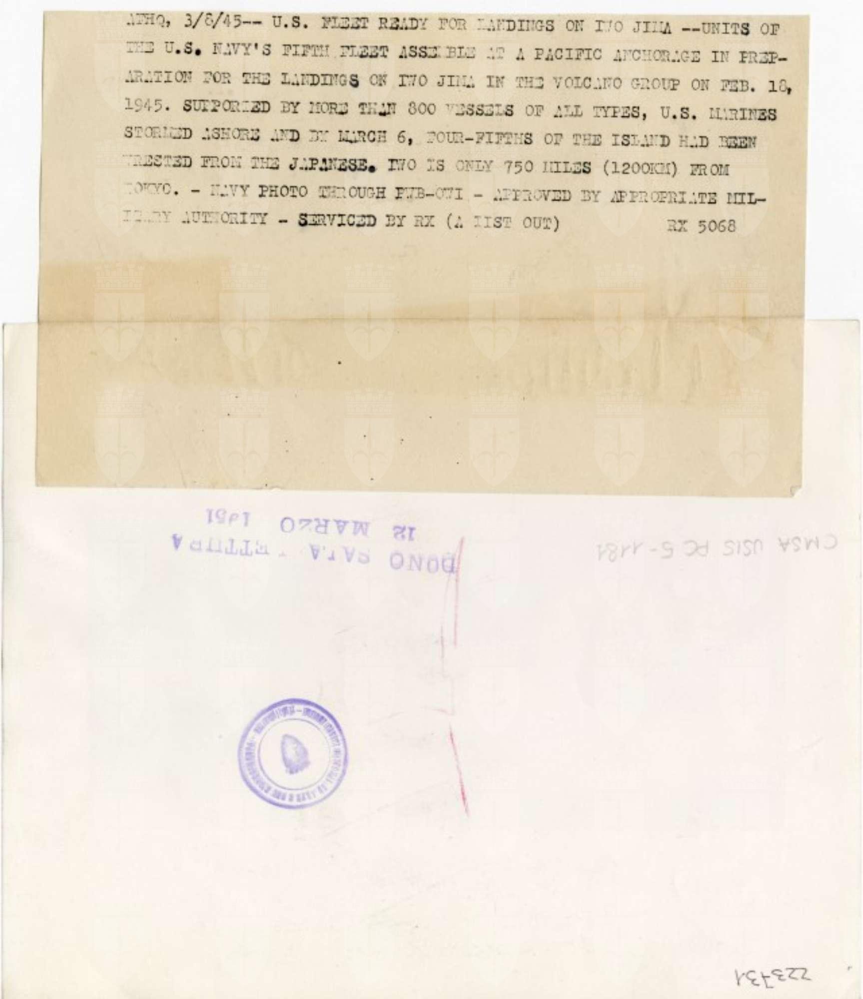 Navy - fotografo principale ; Office of War Information. Psychological Warfare Branch - distributore