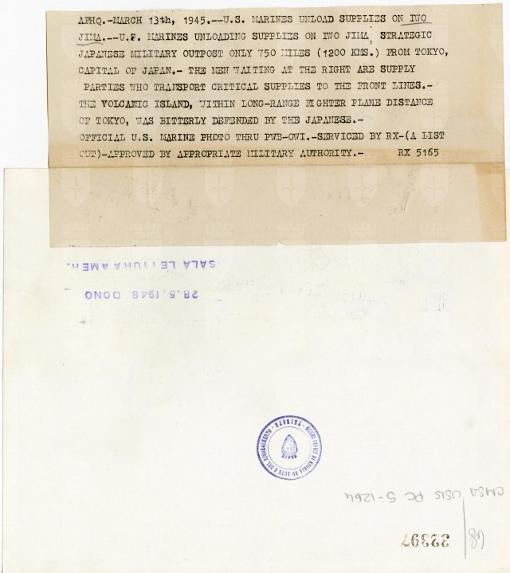 Marine Corps - fotografo principale ; Office of War Information. Psychological Warfare Branch - distributore
