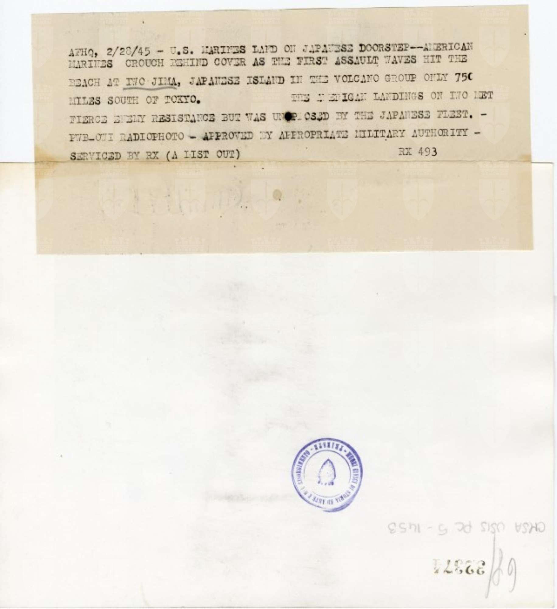 Marine Corps - fotografo principale ; Office of War Information. Psychological Warfare Branch - distributore