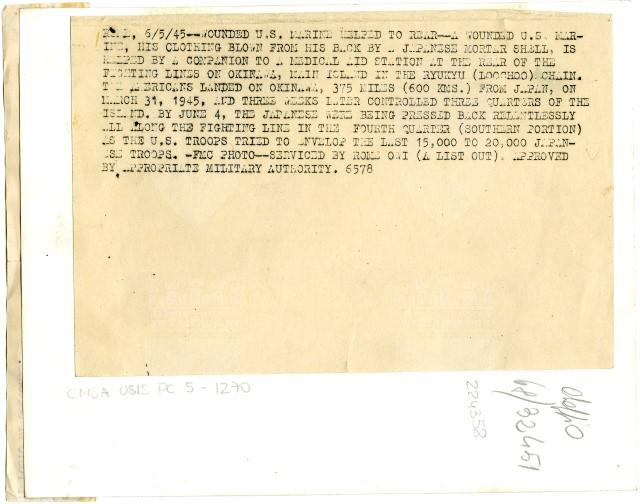 Un soldato americano, ferito durante la battaglia di Okinawa, viene portato in spalla da un commilitone per raggiungere le retrovie americane.