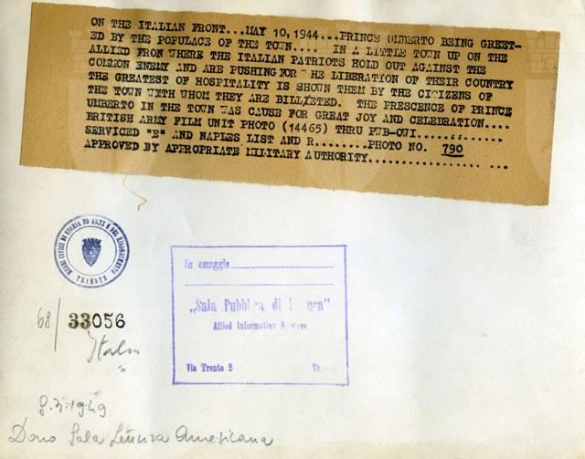 Office of War Information - distributore ; Ministery of Information : Photograph Division - studio fotografico
