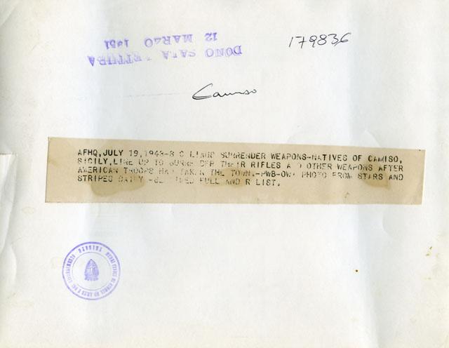 Gli abitanti di Comiso consegnano le armi agli alleati.