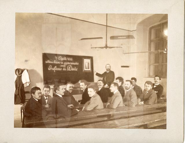 Gruppo di allievi con Filippo Zamboni: ultima lezione in questo semestre sull'Inferno di Dante: Vienna 4 aprile 1892