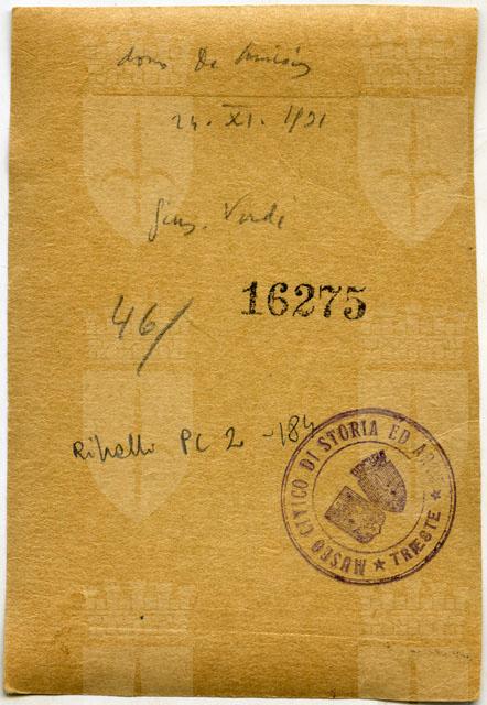 Proprietà Ente pubblico territoriale; Civici musei di Storia ed Arte; donazione; De Amicis, Matilde; 1931/11/24