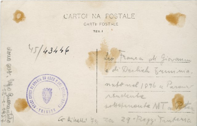 Leo Franca, nato a Parenzo nel 1896, volontario nel 29° Rgt. fanteria