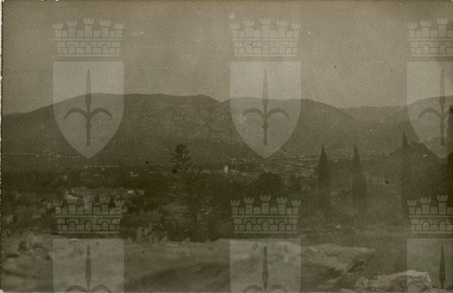 Panorama dal castello di Gorizia verso nord: Sabotino, Monte Santo, Sella di Dol, S. Gabriele, più sotto S. Caterina.