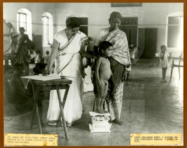 Esame dei figli degli operai nella clinica di un grande cotonificio nell'India meridionale