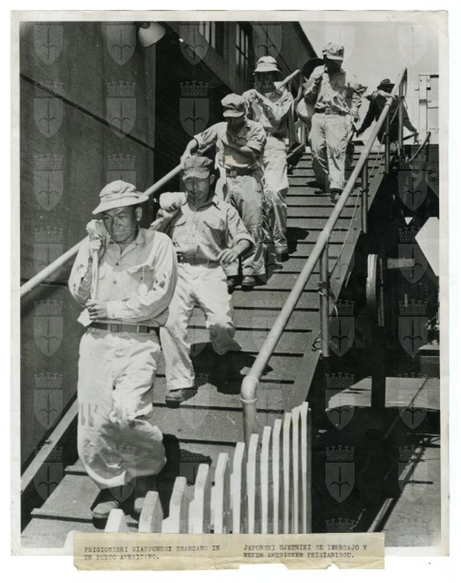 Prigionieri giapponesi sbarcano in un porto americano