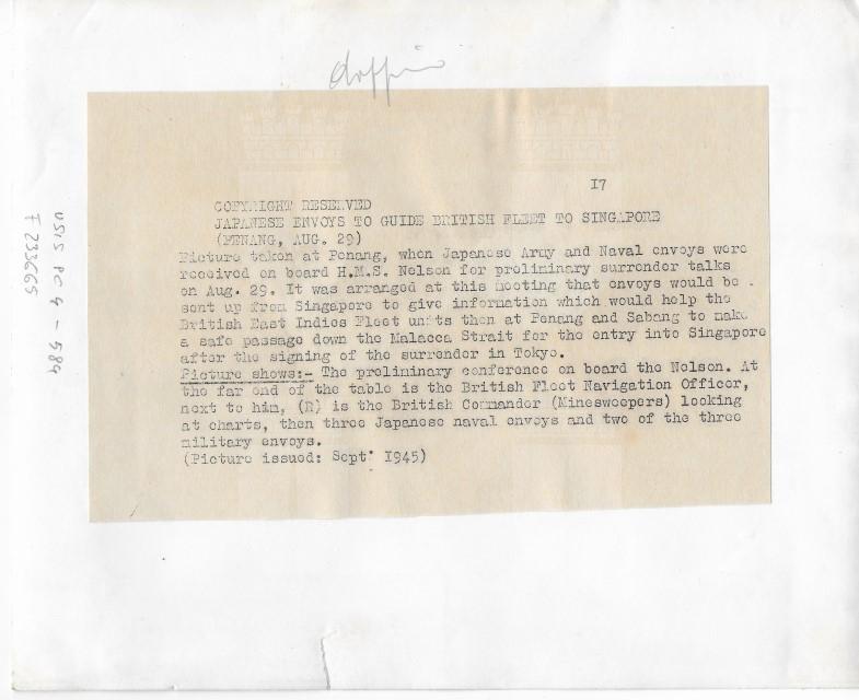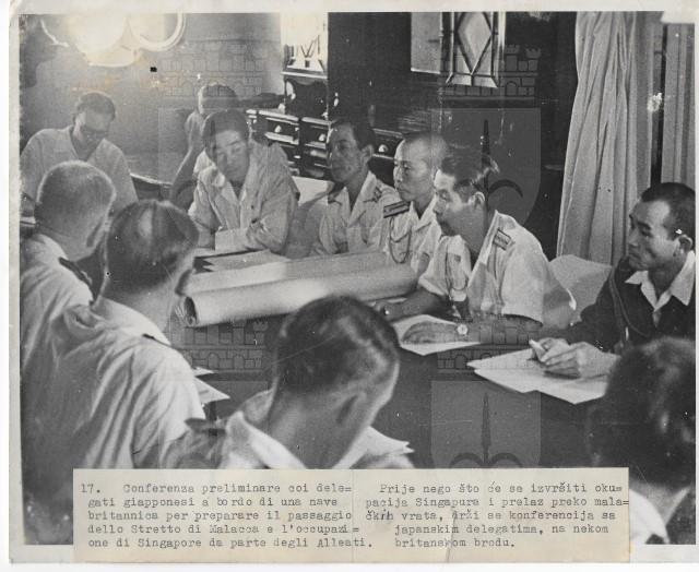 Conferenza preliminare con i delegati giapponesi per il passaggio di Malacca e Singapore agli alleati