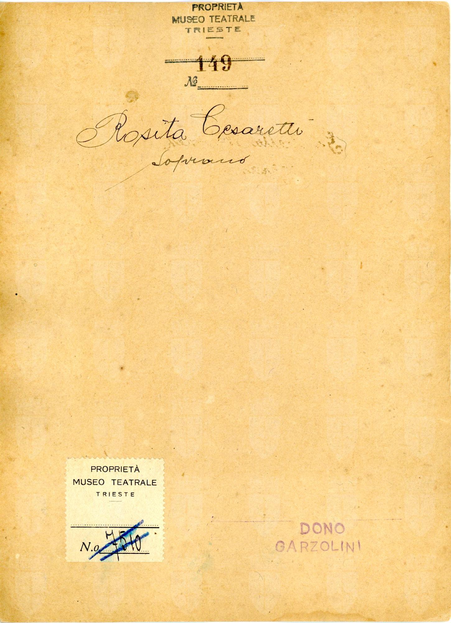 Proprietà Ente pubblico territoriale; Civico museo teatrale C. Schmidl; donazione; Garzolini, Eugenio; 1938/02/01